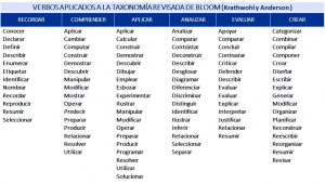 Para la redacción de los objetivos, se recomienda la utilización de verbos de la dimensión cognitiva de la taxonomía, ya que estos se orientan al conocimiento y la comprensión de un tema. A continuación, se detalla el cuadro de verbos sugeridos de la dimensión cognitiva por la taxonomía, de acuerdo con los niveles de aprendizaje: